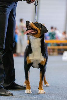"9 miesięczna, bardzo dobry typ, prawidłowe proporcje, prawidłowe linie, dobrze noszony i osadzony ogon, kątowanie prawidłowe, dobra akcja kończyn, prawidłowe proporcje głowy, dobre ucho, prawidłowa szata, i temperament"
